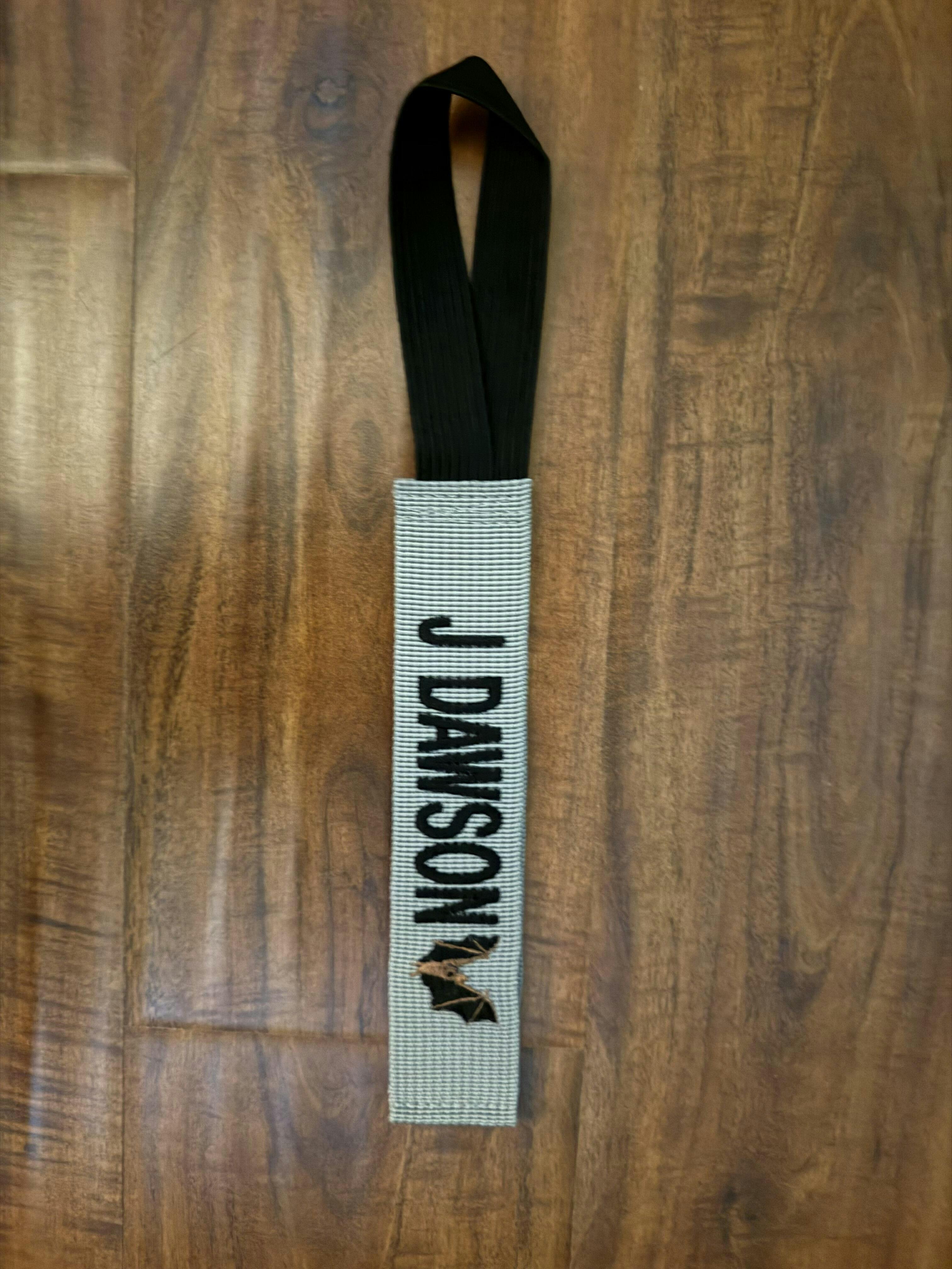 Secure the bag tag loop around handles or straps and you’re ready to go. Loop is tough elastic so it stretches and flexes without breaking.